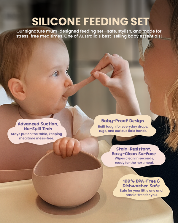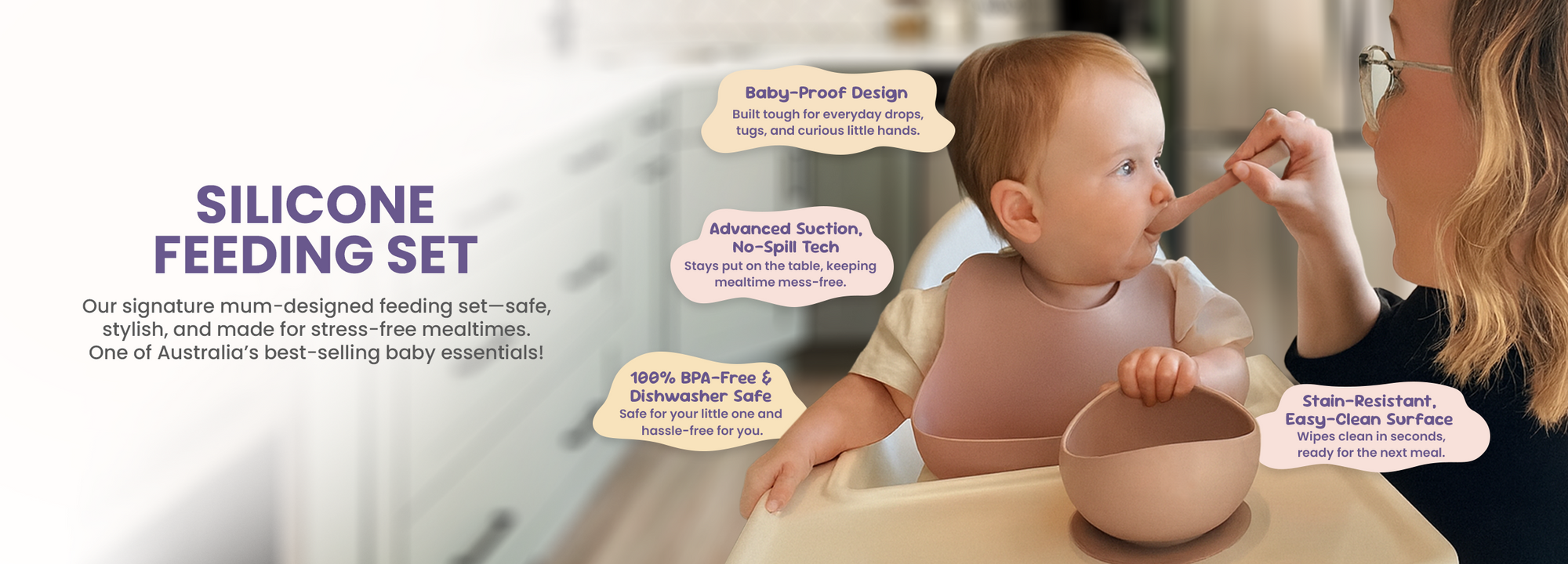 We’re a proudly Australian family brand, created by parents who know mealtimes aren’t always picture perfect sometimes they’re wonderfully chaotic. Our 100% food grade silicone essentials are soft on gums, tough on mess, and made to last through every drop and giggle.